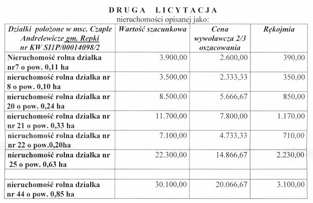 LICYTACJA! Na sprzedaż nieruchomość rolna w gminie Repki do nabycia całość lub poszczególne działki. Działki o łącznej powierzchni 2,8200 ha